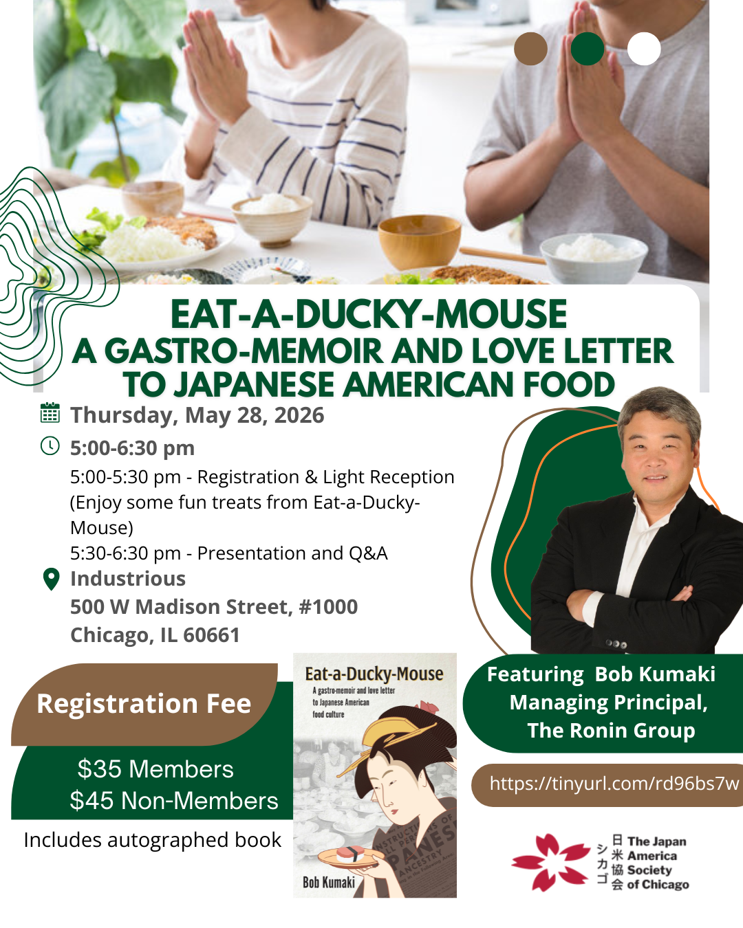 Every group of immigrants that comes to the US brings with it a food culture that may not be reproduceable in their new home given the availability of products, retailers, and restaurants, as well as the urge to leave old ways behind and acculturate into the American food landscape. However, many cultures, Japanese Americans among them, have successfully integrated foods from the homeland with “American” cuisine, creating a food culture that is unique to both. Eat-a-Ducky Mouse: A Gastro-Memoir and Love Letter to Japanese American Food Culture is the first in-depth examination of over 125 years of Japanese American eating, drinking, cooking, dining and more.